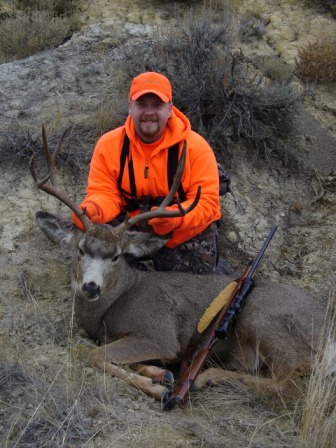 Last year, it was two beautiful muley bucks (the 339-Yard 5×4 and the Straight Down 5×5) in a record time of 36 hours in the deepest, most challenging, and most beautiful area of the the eastern Montana Badlands we had ever hunted that made for the best hunt ever. The final tally this year was Hunters 0, Mule Deer 2. But, then again, this year we fought a different battle. By cell phone somewhere between Bismarck and Dickinson, we discovered a ranch employee had messed up our reservation and we were forced to spend the first three days of our hunt in Area 2. Still a vast and challenging expanse, Area 2 simply holds fewer trophy bucks because Areas 3 and 4 offer territory that only the bold shall travel. However the mix up did give us the chance to get more acquainted with Jim and Nancy, the ranchers who had come to our aid by chance the year before. Friends.